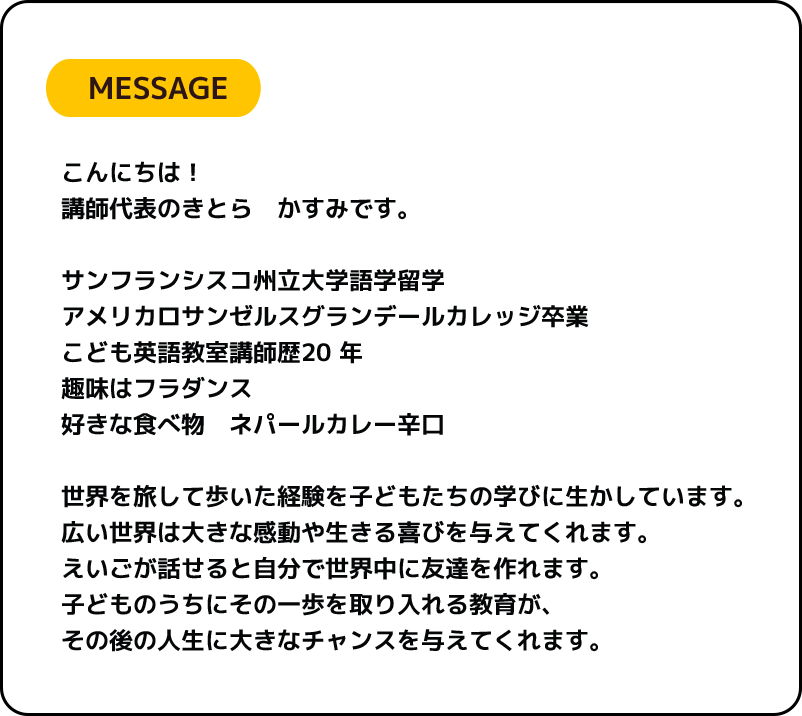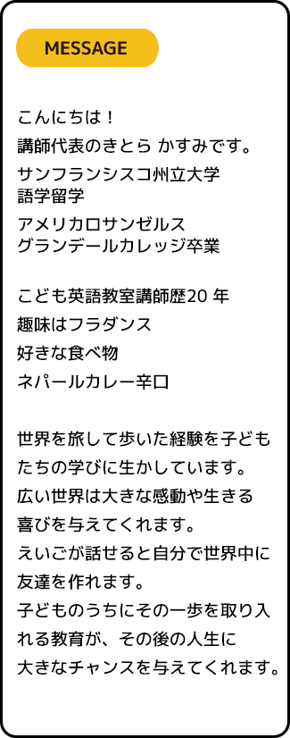こども英語講師として20年以上、たくさんのこども達を教えてきました。
