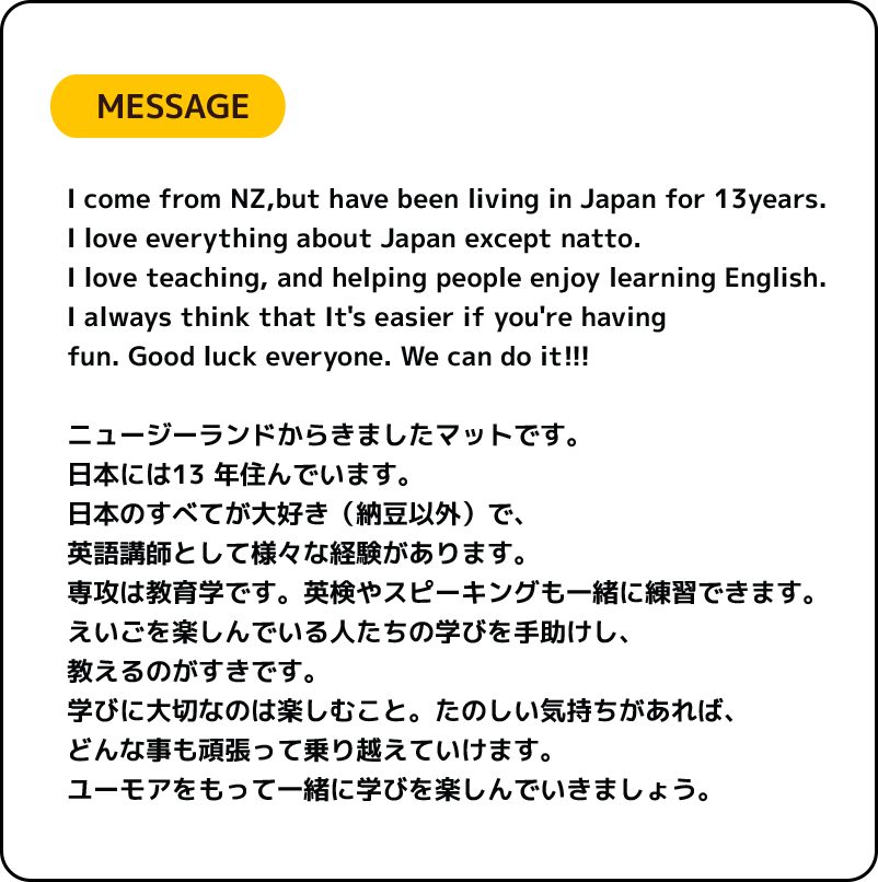 | プライベート | 60分 | ご希望の学習内容すべてに対応可です |