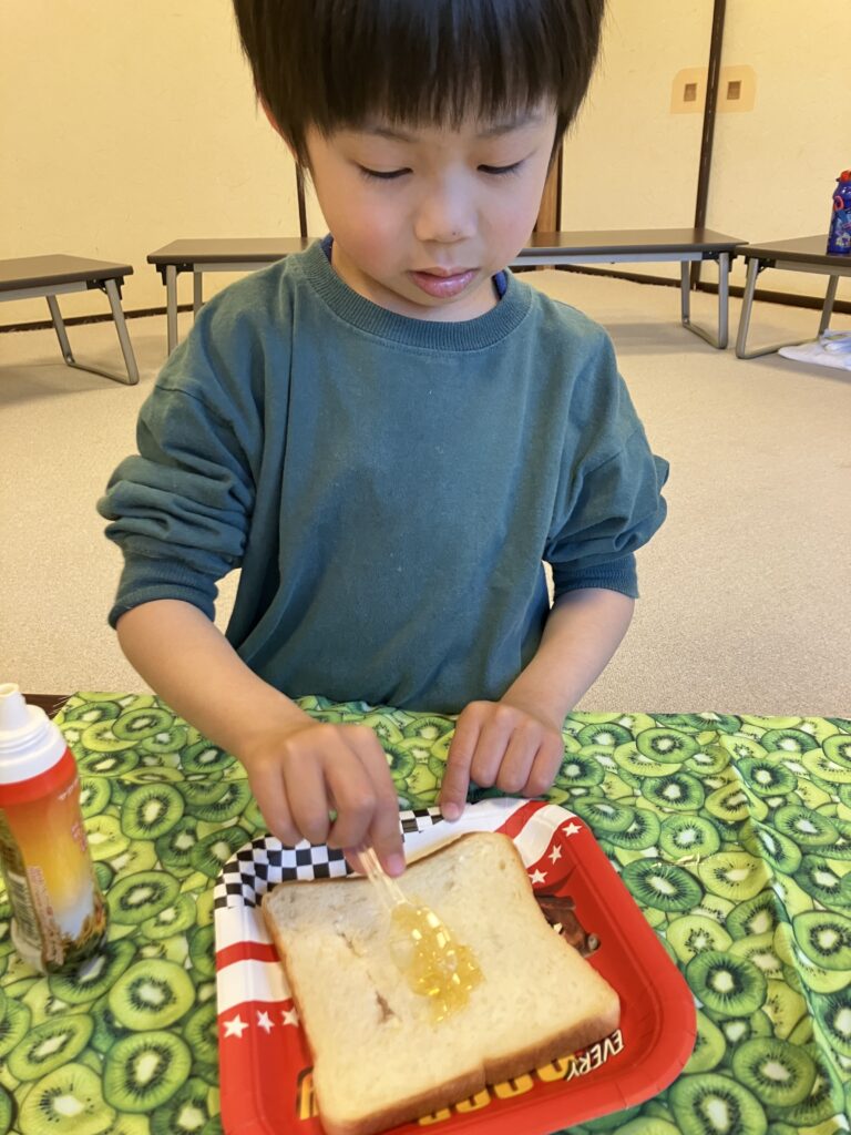 大好きなhoneyをぬって・・いつもおうちでもハニーシロップだよって教えてくれてリクエストにこたえられたよ😊