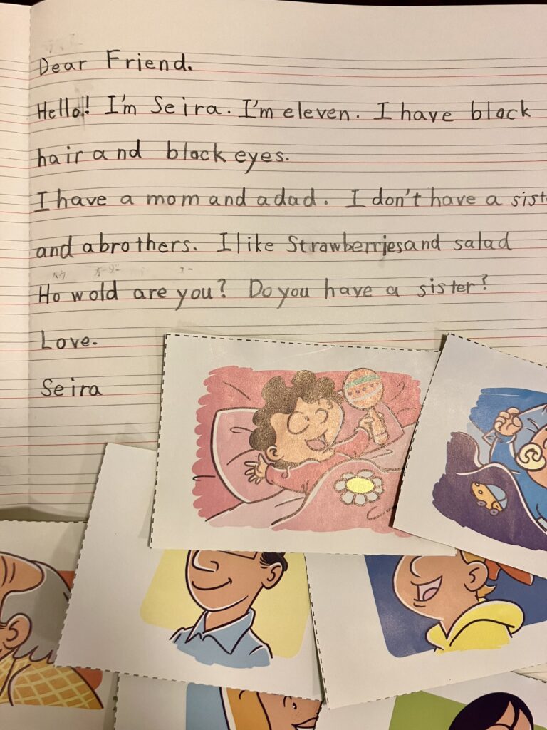 今日は作文…世界のお友達へ…自分の見た目、家族、すきなもの